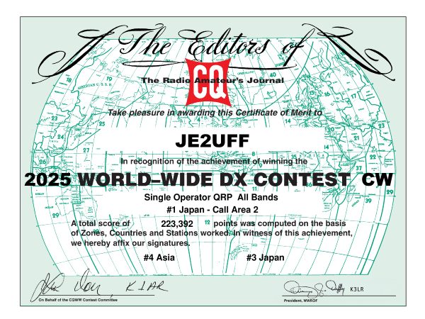 さて、CQ WW DX Contest Committeeから2025年のCQWW CQのチェックレポートとResultの連絡が来ました。